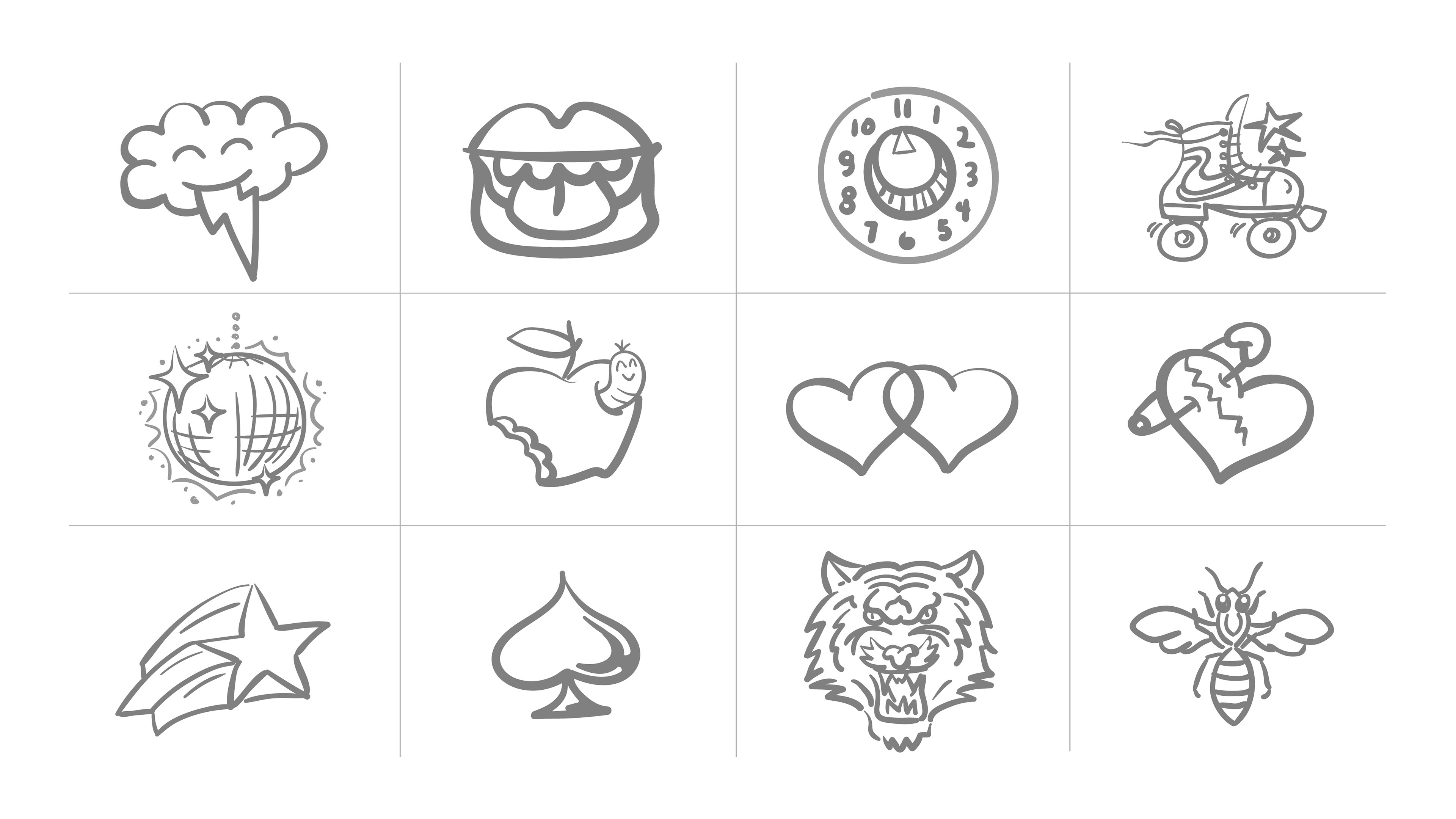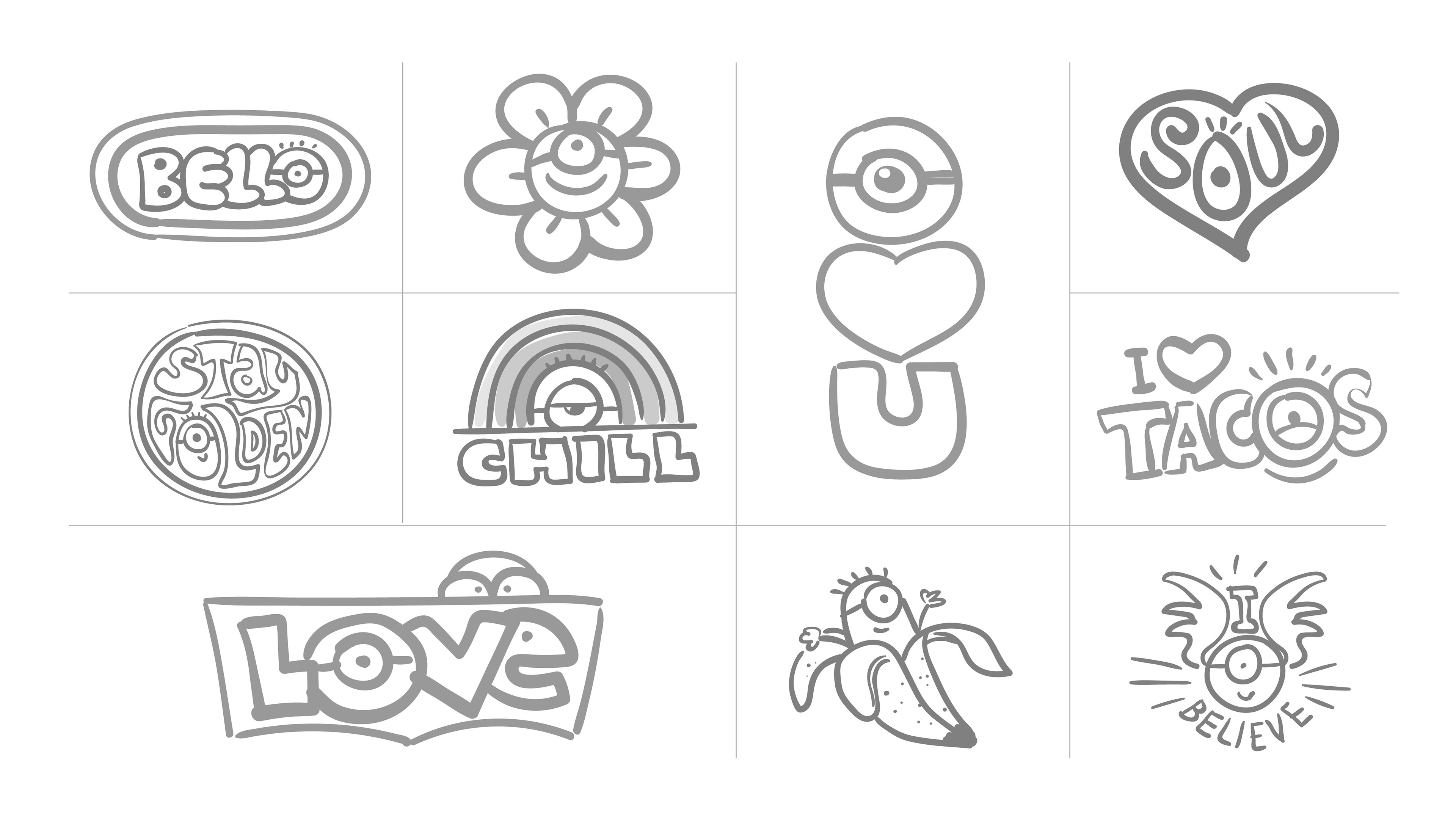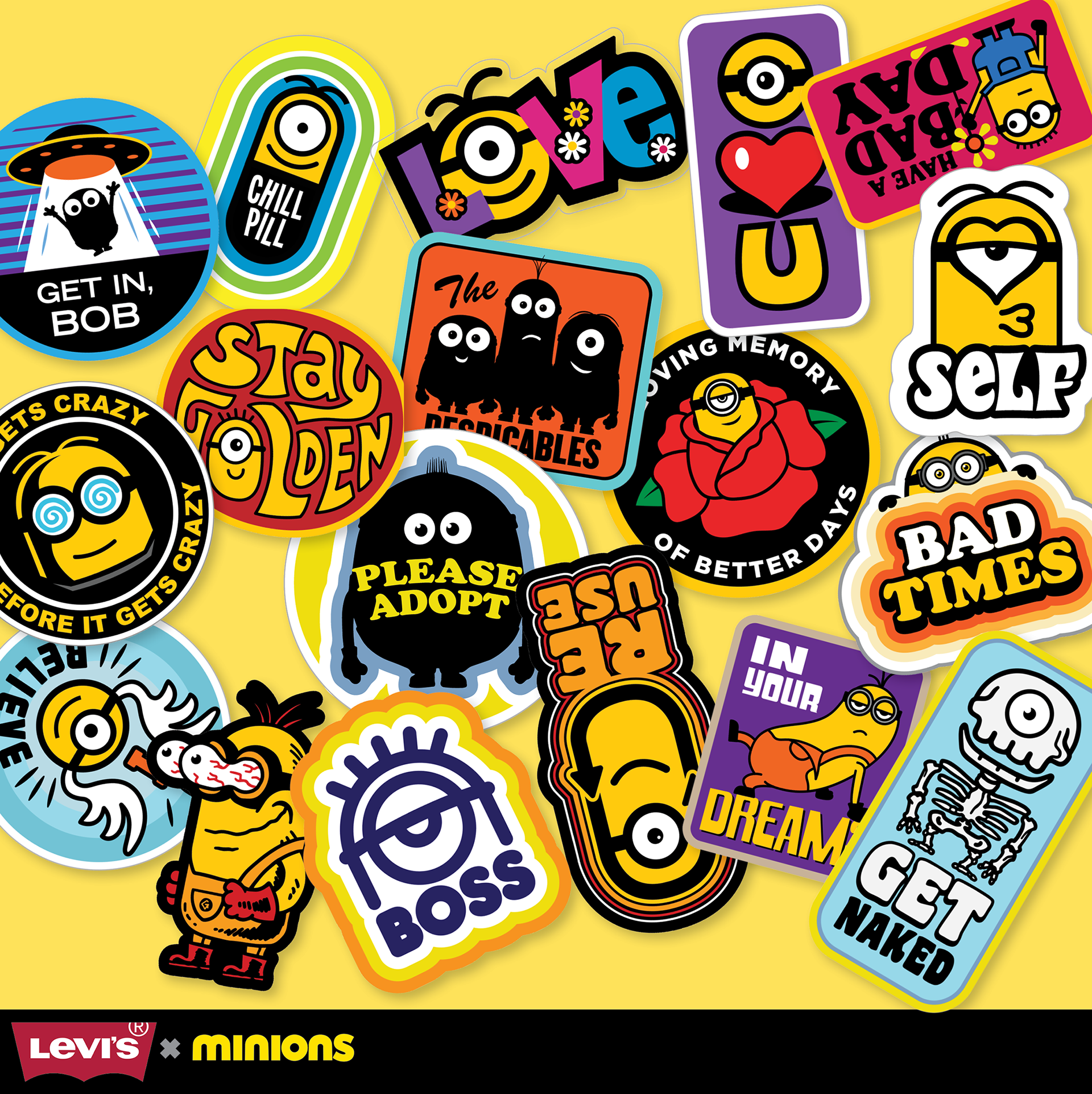 Concept drawings of patches/stickers icons for Levi's X Minions Collab
