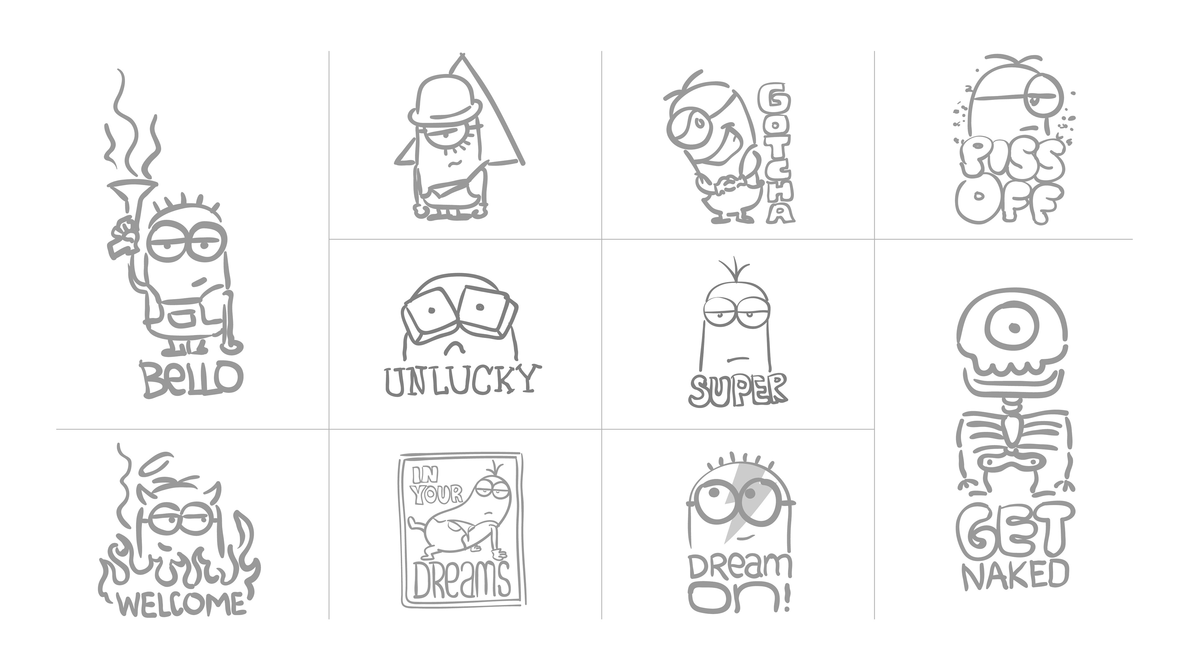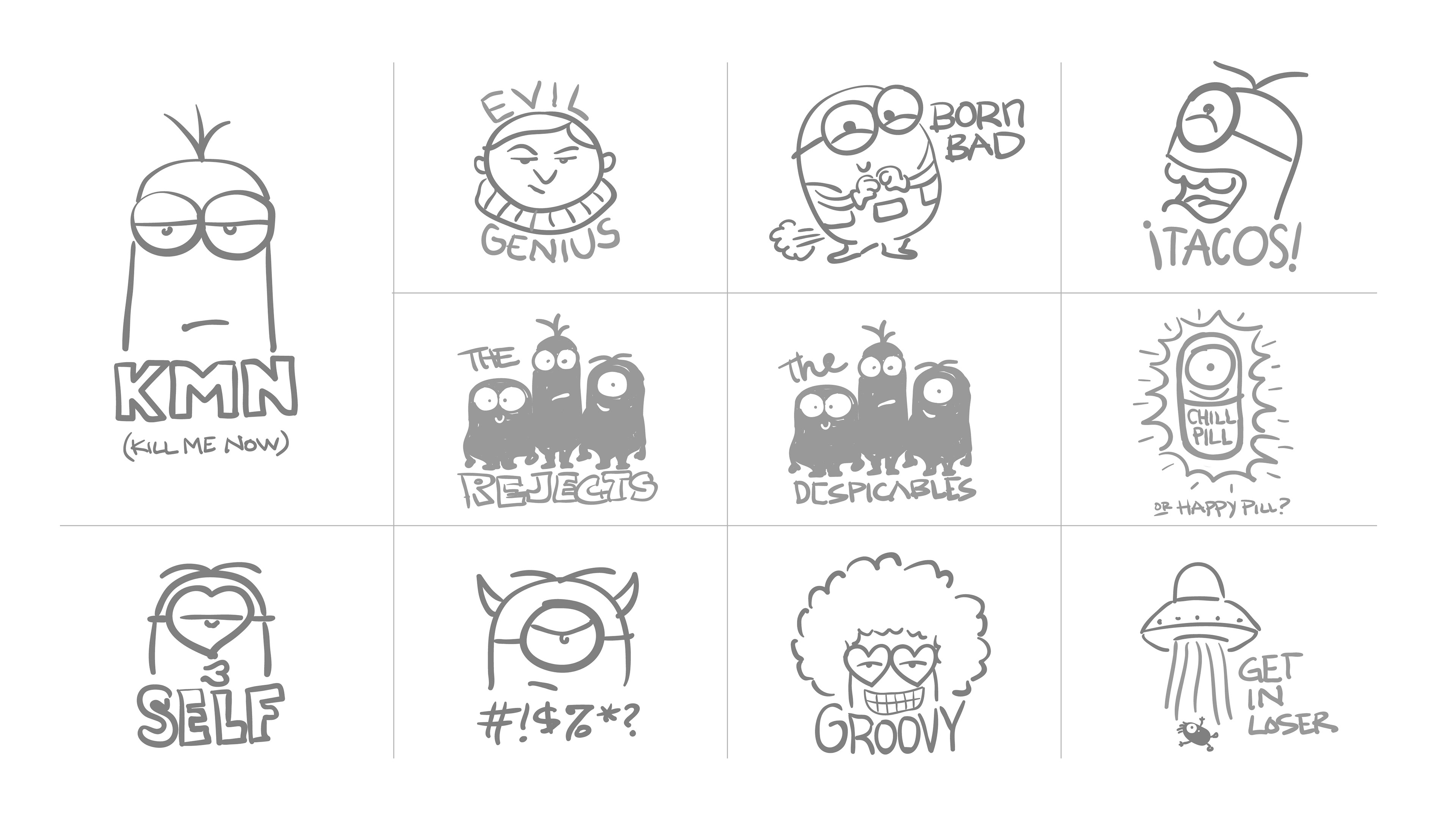 Concept drawings of Minions for patches/stickers