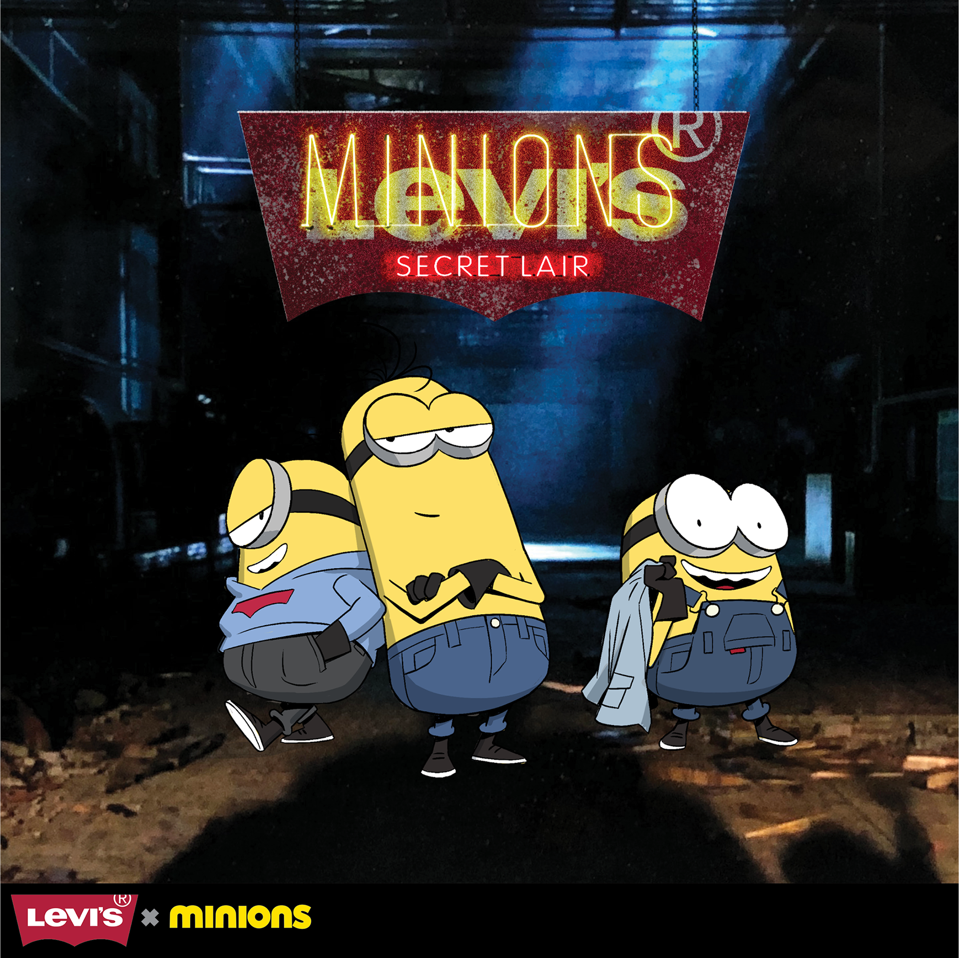 Key art concept announcing Levi's X Minions Collab